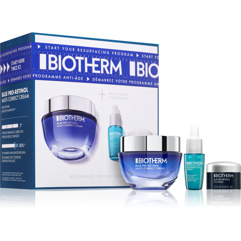 Gładka skóra bez zmarszczek, z każdym dniem coraz bardziej napięta i elastyczna – między innym takie spektakularne efekty zapewnia krem multikorekcyjny Biotherm Blue Therapy Pro-Retinol. Swoje działanie, potwierdzone naukowo, zawdzięcza wyjątkowemu składowi z technologią BLUE BIOTECH, a także zawartości pro-retinolu i ekstraktu z alg.