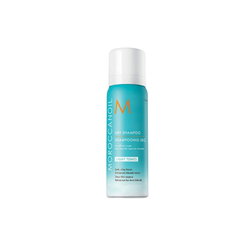 Moroccanoil Dry Shampoo Light Tones - suchy szampon do jasnych włosów 62 ml to oczyszczający spray do włosów, który natychmiastowo odświeża i rewitalizuje włosy oraz skórę głowy, tym samym przedłużając trwałość fryzury. Formuła Suchego Szamponu do jasnych włosów zawiera subtelne fioletowe drobinki, które analogicznie do idei fioletowego zwykłego (mokrego) szamponu, wnikają i pomagają zrównoważyć, ożywić i wydobyć najładniejsze jasne odcienie.