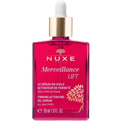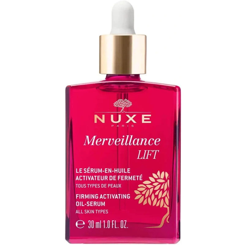 NUXE Merveillance Lift Olejowe serum liftingujące do twarzy, 30 ml ujędrnia, wygładza i uelastycznia skórę. Zawiera innowacyjny ultra-korygujący olej z mikroalg, aby codziennie wzmacniać skórę twarzy, szyi i dekoltu. Kosmetyki do twarzy Merveillance Lift łączą w sobie uzależniające nuty zapachowe frezji i magnolii oraz wyjątkowe konsystencje.