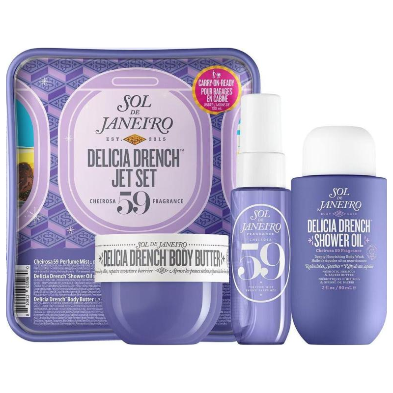 To trio bestsellerowych produktów z kolekcji Delícia Drench™ przekształci Twoją codzienną pielęgnację skóry w doskonale pachnący rytuał: rozpieszczający olejek pod prysznic, nawilżające masło do ciała i perfumowana mgiełka, która wypełni każdą przygodę śliwką, wanilią i odrobiną drzewa sandałowego . Wszystko w stylowej torbie, która wymaga miejsca w torebce lub walizce.