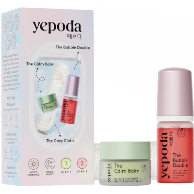 Odkryj prostotę i skuteczność dwufazowego oczyszczania twarzy z zestawem Yepoda The Mini Cleansing Duo. W skład zestawu wchodzą The Calm Balm — odżywczy balsam do demakijażu — oraz The Bubble Double — delikatna pianka oczyszczająca. To idealne rozwiązanie, jeśli chcesz dokładnie oczyścić skórę, usunąć makijaż i filtry przeciwsłoneczne, a jednocześnie zachować uczucie komfortu i nawilżenia.