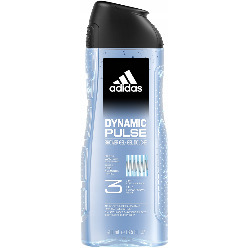 Żel pod prysznic adidas Dynamic Pulse intryguje świeżym, drzewnym zapachem i zawiera naturalny olejek eteryczny z rozmarynu i cytryny.