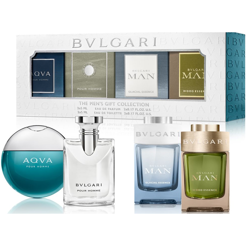 Bulgari Zestaw męskich miniaturek Aqva Pour Homme woda toaletowa 5ml + Pour Homme woda toaletowa 5ml + Man Glacial Essence woda perfumowana 5ml + Man Wood Essence woda perfumowana - 5ml