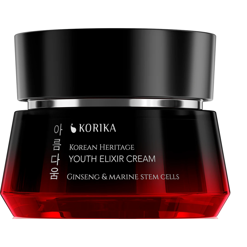 Jak osiągnąć młodzieńczą i jędrną skórę? Użyj odpowiedniego pomocnika przeciwstarzeniowego – odmładzającego i antyoksydacyjnego kremu KORIKA Korean Heritage Youth Elixir Cream. Jego receptura łączy tradycyjne koreańskie składniki z najnowszą wiedzą naukową, aby zapewnić skórze intensywne odżywienie, ujędrnienie i długotrwałe nawilżenie. Dzięki zawartości czerwonego żeń-szenia, komórek macierzystych i hydrolizowanego kolagenu ujędrnia skórę i poprawia jej ogólny wygląd. Wesprzyj swoje naturalne piękno.